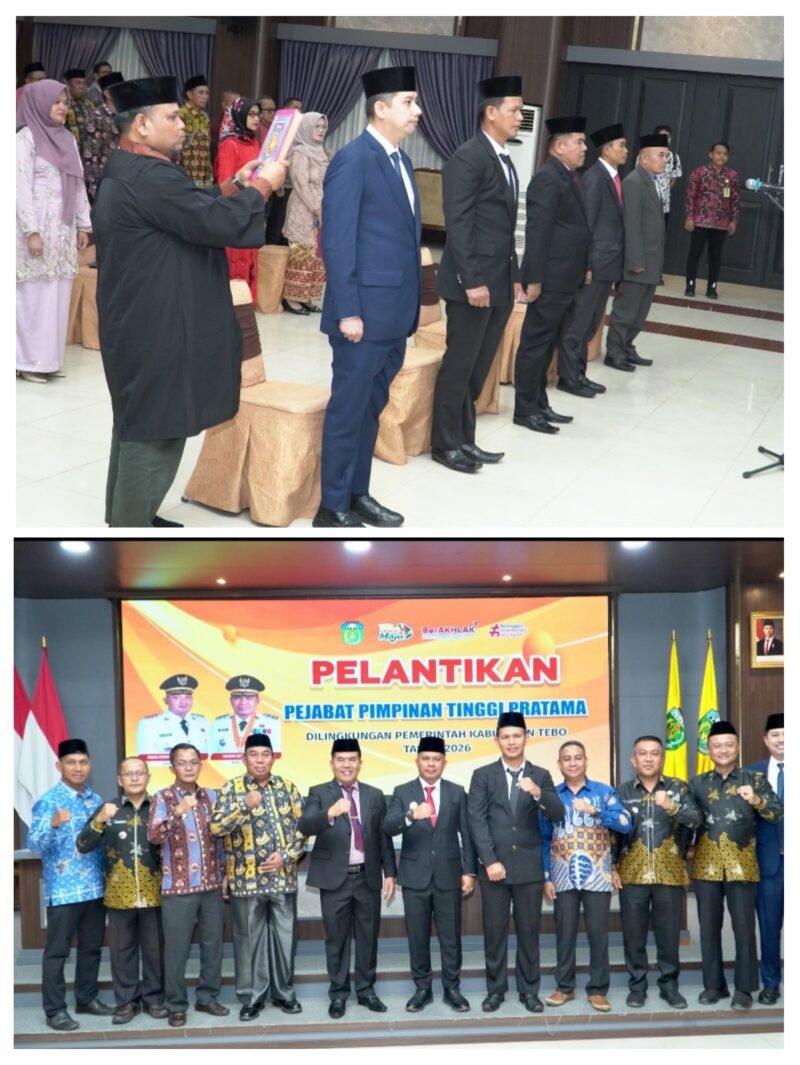 TEBO // MBS — Pemerintah Kabupaten (Pemkab) Tebo resmi menetapkan hasil seleksi terbuka Jabatan Pimpinan Tinggi (JPT) Pratama melalui pelantikan dan pengambilan sumpah jabatan lima pejabat eselon II, Minggu malam (18/01/2026).