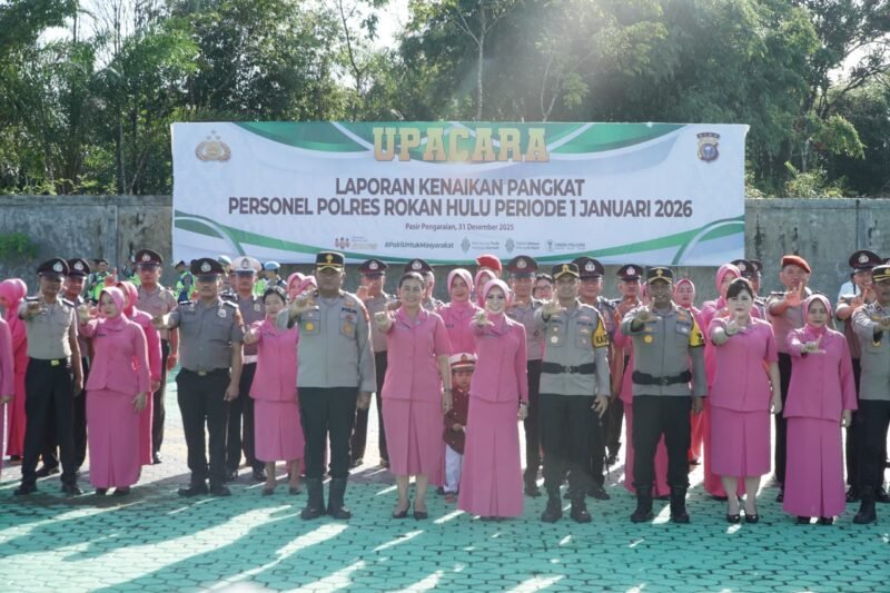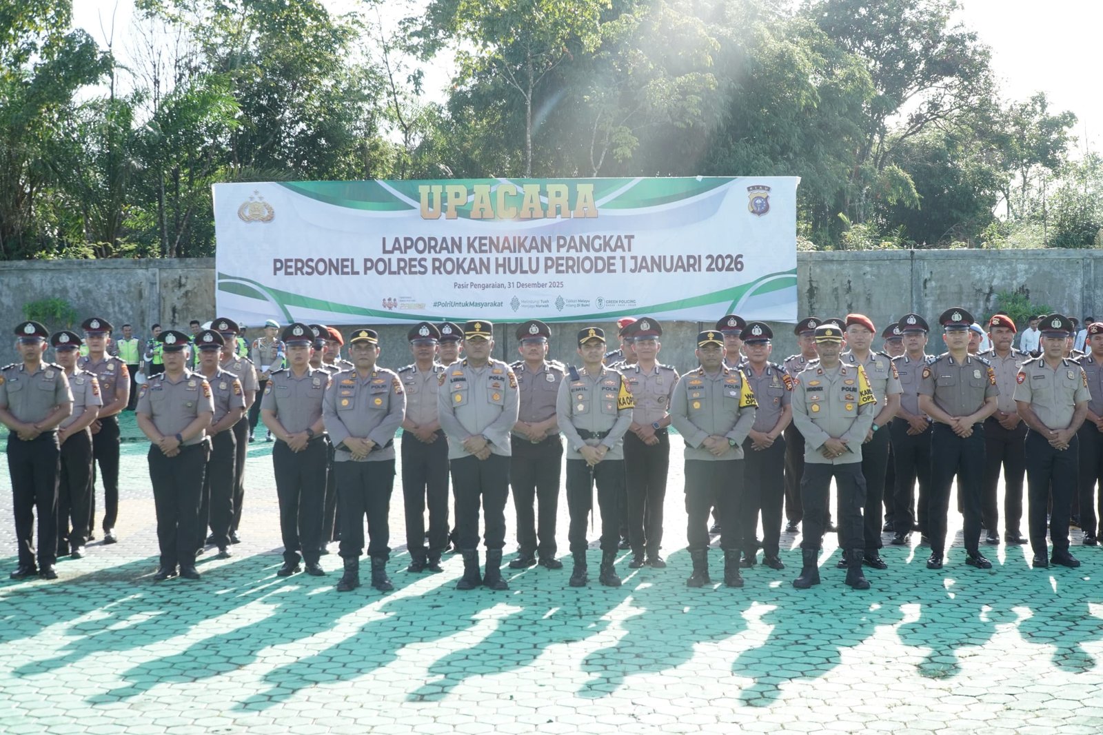 Rokan Hulu-Miyramabes. Sebanyak 63 personel Polres Rokan Hulu resmi menerima kenaikan pangkat setingkat lebih tinggi dalam Upacara Laporan Kenaikan Pangkat Periode 1 Januari 2026 yang digelar di halaman Mapolres Rokan Hulu, Rabu (31/12/2025) pagi.