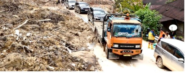 Perlahan, akses darat yang juga menghubungkan Medan dengan Padang di Sumatra Barat mulai terbuka berkat dukungan Dinas Pekerjaan Umum, TNI, dan Polri.