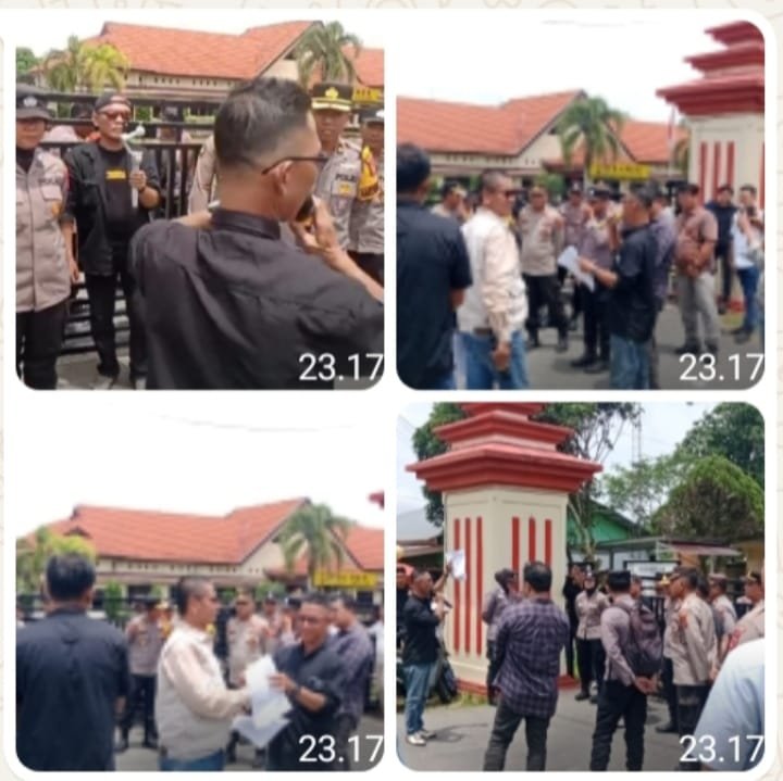 Mereka menuntut penegakan hukum tegas terhadap para pelaku dan “beking” tambang emas ilegal, serta meminta Kapolres Sarolangun mundur dari jabatannya.
