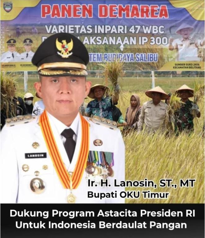 Di tingkat daerah, Bupati OKU Timur, H. Lanosin yang akrab disapa Enos, dinilai berhasil menerjemahkan visi besar tersebut melalui berbagai langkah strategis. Di bawah kepemimpinannya, OKU Timur terus memperkuat posisinya sebagai salah satu sentra produksi pangan di Sumatera Selatan bahkan nasional.