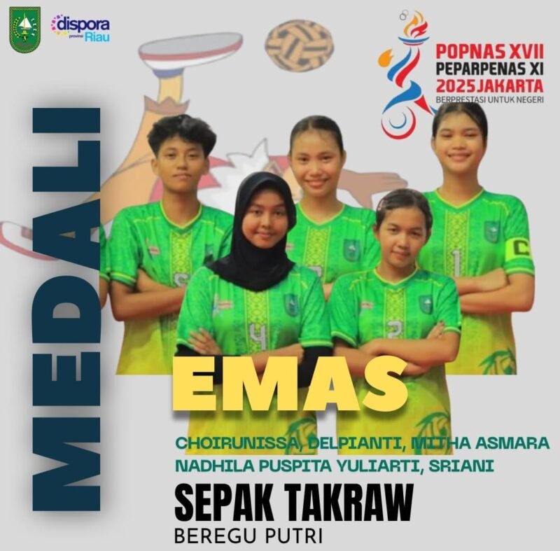 Riau Mitra Mabes.com Tim sepak takraw putri Riau kembali mengharumkan nama daerah dengan torehan gemilang di ajang Pekan Olahraga Pelajar Nasional (POPNAS) XVII dan Pekan Paralimpik Pelajar Nasional (PEPARPENAS) 2025 yang digelar di GOR Cempaka Putih, Jakarta Pusat, sejak 2 hingga 9 November 2025.