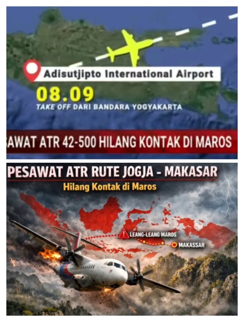Mitramabes.com – Minggu 18 Januari 2026 MAKASSAR – Sebuah pesawat jenis ATR dengan rute Yogyakarta–Makassar dikabarkan mengalami hilang kontak saat melintas di wilayah Kabupaten Maros, Sulawesi Selatan.