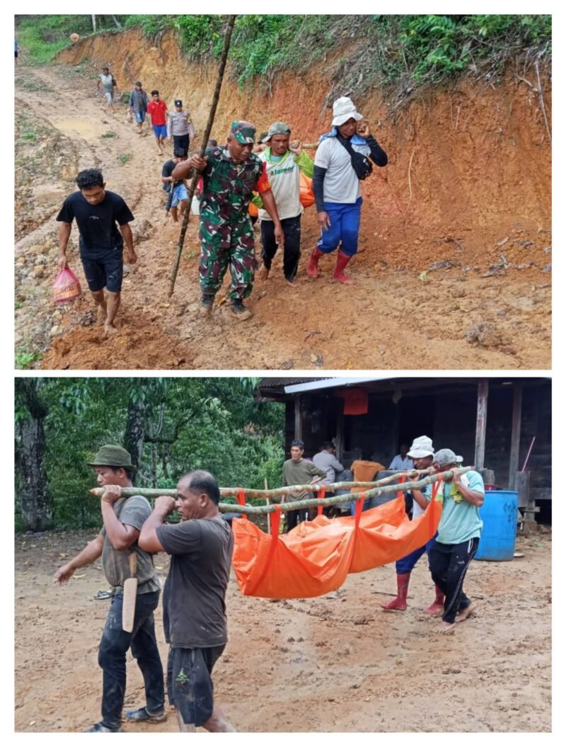 Dairi – Sumut, Mbs – Babinsa Koramil 04/Tigalingga Kodim 0206/Dairi, Serka Salpinus Ginting bersama Bhabinkamtibmas Polsek Tigalingga dan warga berjibaku mengevakuasi korban kecelakaan kerja di kawasan perladangan Desa Tuppak Raja, Kecamatan Gunung Sitember, Kabupaten Dairi. Evakuasi dilakukan secara manual dengan berjalan kaki menembus medan curam sejauh puluhan kilometer pada Sabtu, 22 November 2025, usai menerima laporan penemuan mayat dari perangkat desa setempat. Identitas korban diketahui bernama Sakiran (55), seorang wiraswasta asal Dusun II Sei Glugur, Kecamatan Pancur Batu, Kabupaten Deli Serdang.