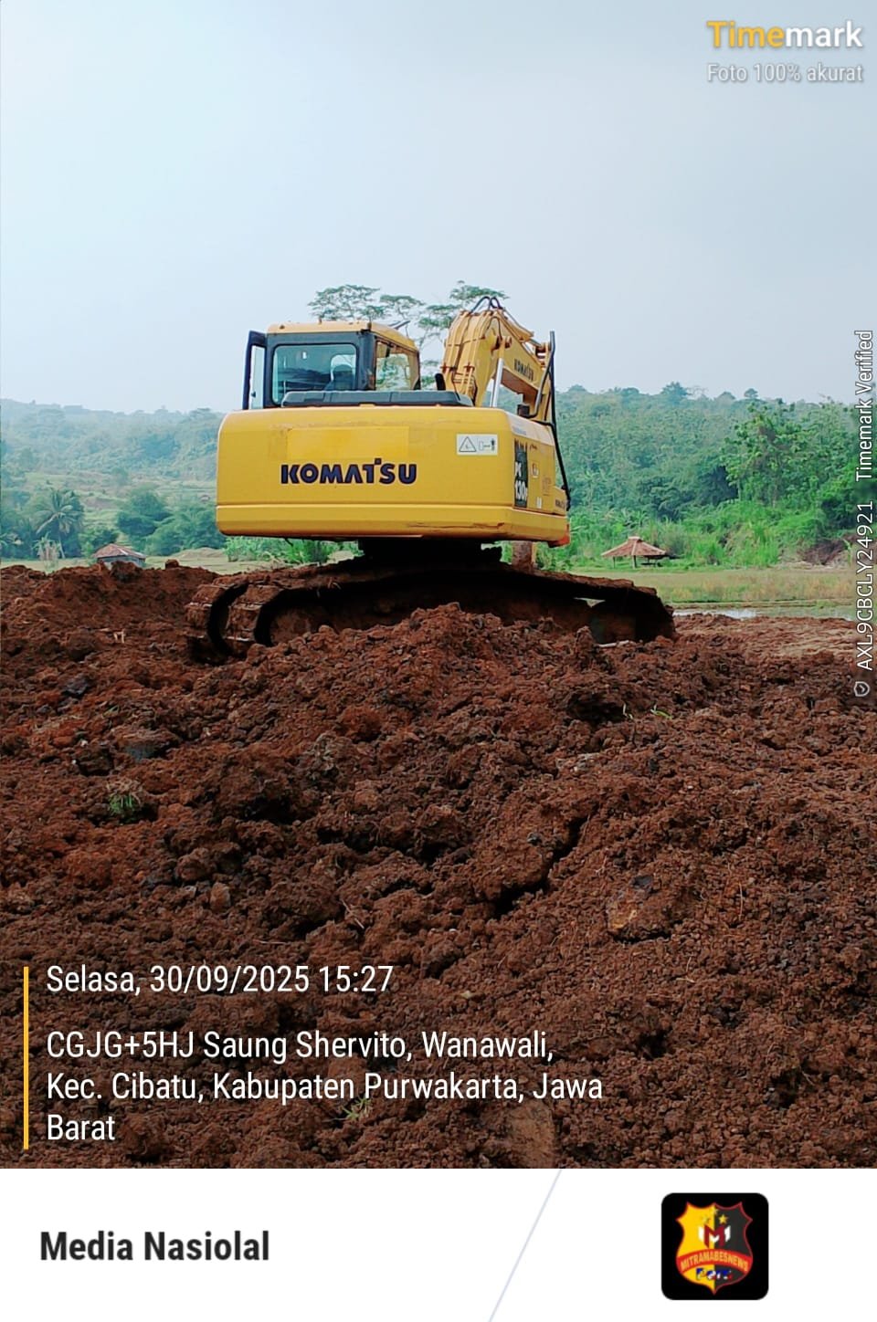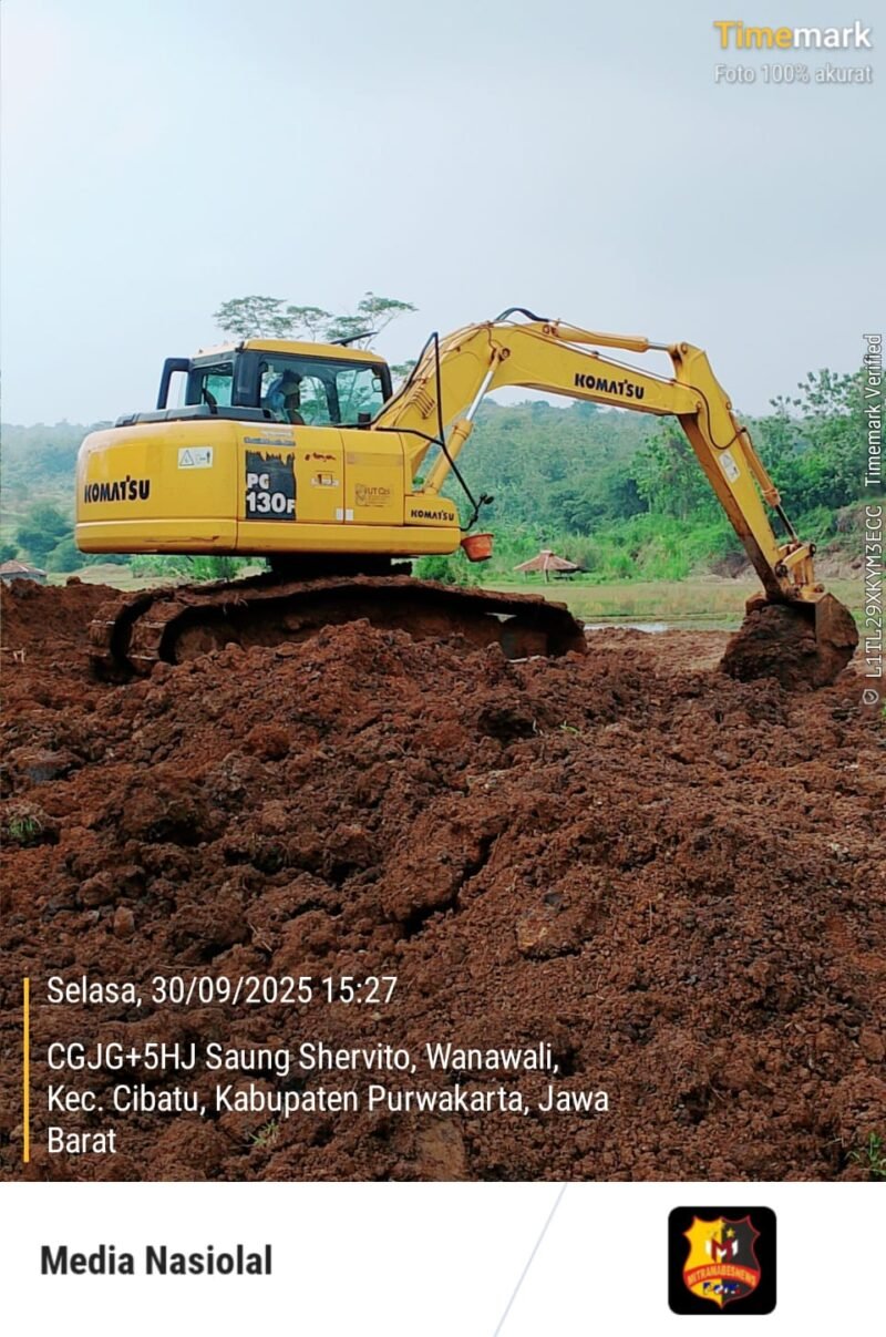 Dengan sigap Penelusuran pun di lakukan oleh awak media tepatnya pada hari Selasa 30/9/2025 sekitar pukul 15:30 awak media pun mengunjungi salah satu tempat milik Hj cahmat yang berlokasi di wilayah cigoyot Saung shervito desa wanawali kec Cibatu Kab Purwakarta yang di duga sebagai penyewa alat berat tersebut