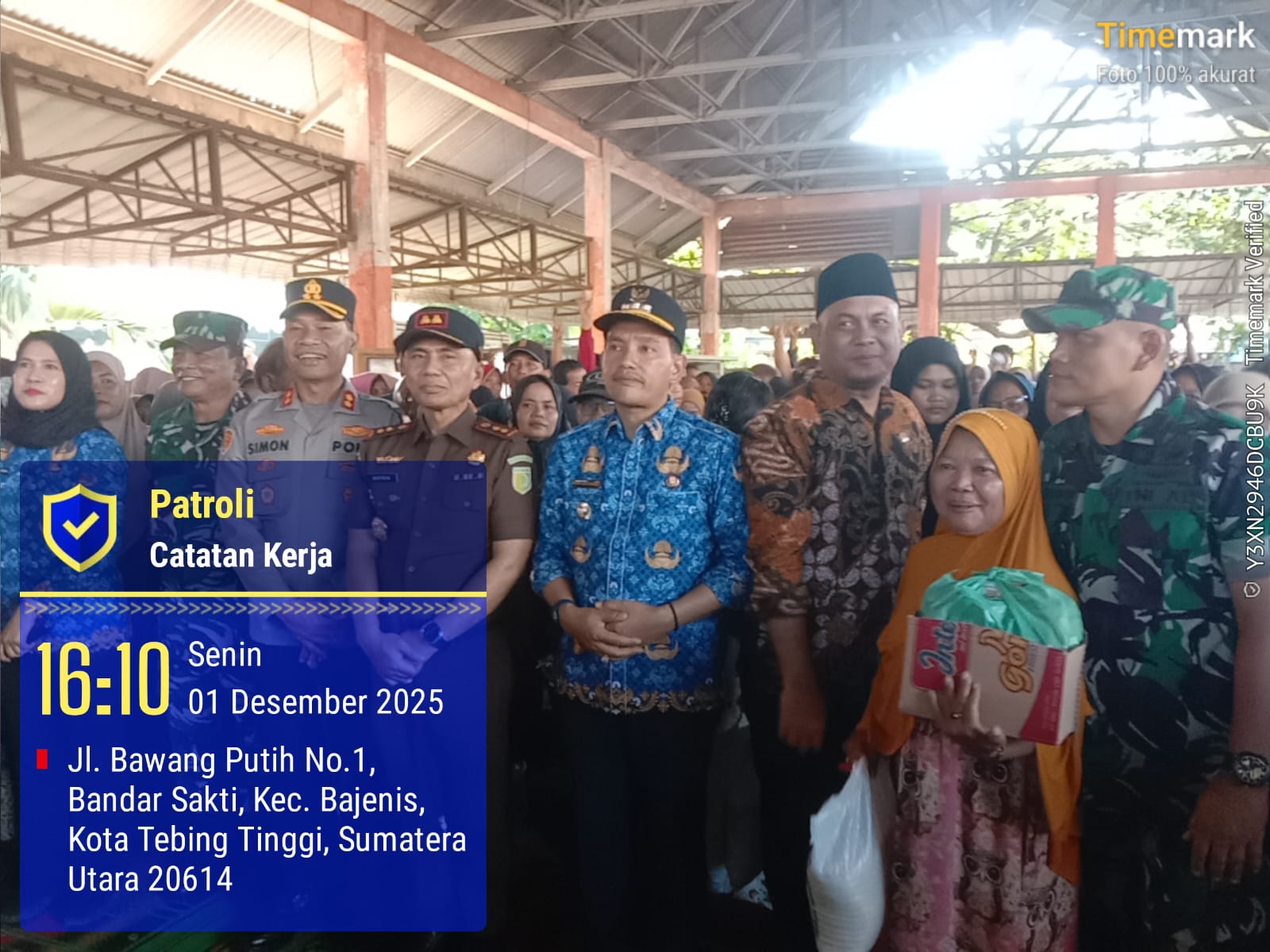 Tebingtinggi MBS 2 .12.2025 Mbs com Bapak walikota Tebingtinggi H. Iman Irdian Saragih SE .mengunjungi warga yang terkena bencana banjir sekecamatan Bajenis bertempat di pasar sakti dan memberikan bantuan berupa sembako kepada masyarakat di enam kelurahan sekecamatan Bajenis 2 .12 2025.