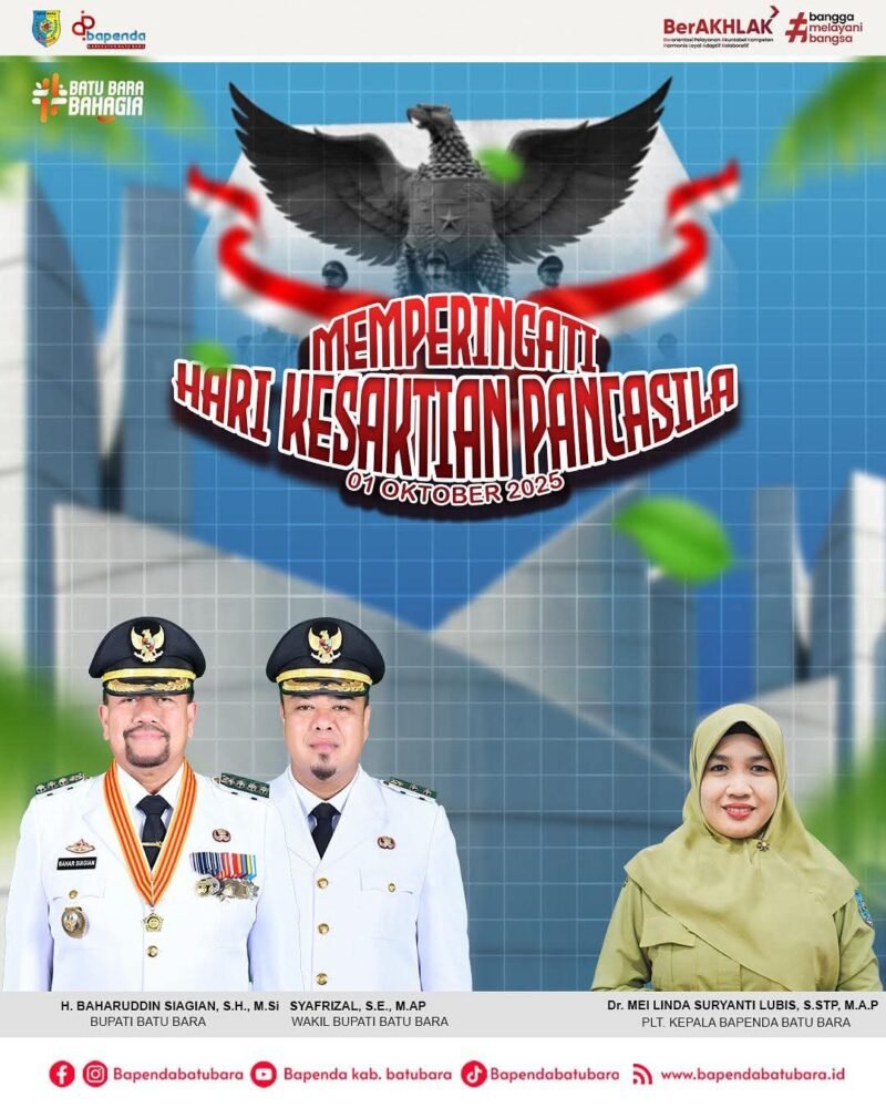 Mbs.com- Sumatera Utara, Batubara- Badan Pendapatan Daerah (Bapenda) Kabupaten Batu Bara menyampaikan ucapan Selamat memperingati Hari Kesaktian Pancasila, 1 Oktober 2025.
