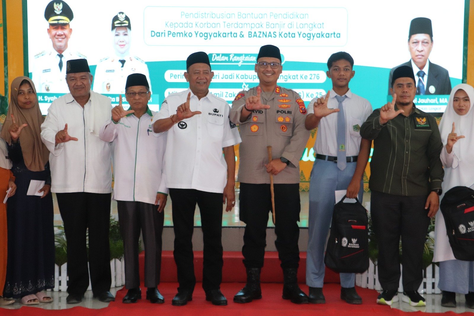 Dalam sambutannya, Bupati Langkat menyampaikan apresiasi dan terima kasih kepada seluruh pihak yang telah berkontribusi, khususnya BAZNAS Kabupaten Langkat serta dukungan dari Pemerintah Kota Yogyakarta dan BAZNAS Kota Yogyakarta. Momentum Hari Jadi Kabupaten Langkat ke-276 dan Milad BAZNAS ke-25 disebut menjadi penguat semangat gotong royong dalam membantu masyarakat, khususnya para pelajar yang terdampak bencana banjir.