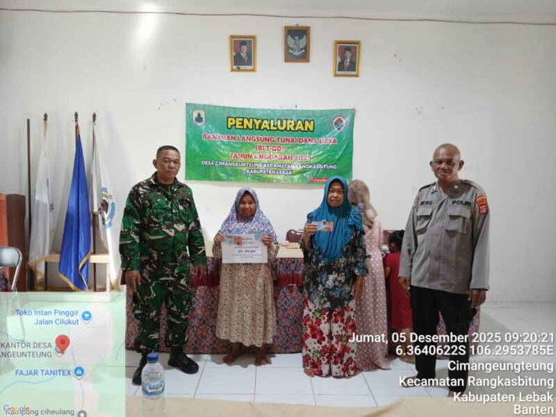 LEBAK,Mitramabes.com-Berikan pelayanan kepada masyarakat,Kanit Binmas Polsek Rangkasbitung Polres Lebak AIPTU Heru Sasmito dan Babinsa Koramil Rangkasbitung, melaksanakan kegiatan monitoring Penyaluran Bantuan Langsung Tunai (BLT) yang bersumber dari Anggaran Dana Desa Tahun 2025.Untuk warga yang kurang mampu di Desa Cimangeunteng.Jumat (05/12/2025)