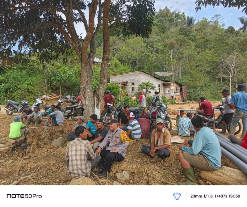 Personel Polsek Celala Polres Aceh Tengah melalui Bhabinkamtibmas bersama aparatur kampung dan masyarakat melaksanakan kegiatan gotong royong pemasangan saluran air bersih di Dusun 2 Kampung Kuyun Uken, Kecamatan Celala, Kabupaten Aceh Tengah, Rabu (11/2/2026) sekitar pukul 09.00 WIB.