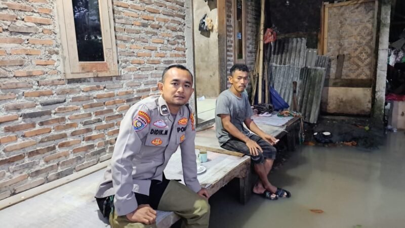 LEBAK Banten mitramabes.com-Bhabinkamtibmas Polsek Rangkasbitung Polres Lebak IPDA Didik Mahardhika,temui warga di pemukiman lokasi terdampak genangan air akibat luapan air anak sungai Ciujung di Kampung Rancagawe, Desa Cikatapis, Kecamatan Kalanganyar, Kabupaten Lebak.