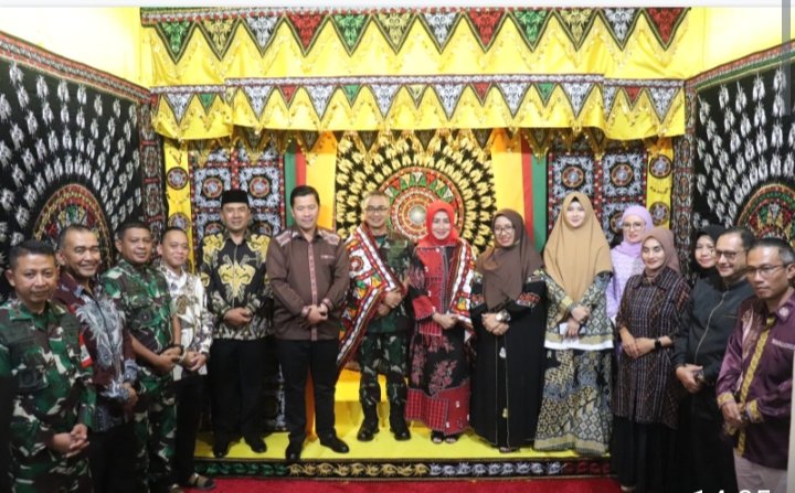 Kedatangan Pangdam IM dan rombongan disambut hangat oleh Bupati Aceh Tengah, Drs. Haili Yoga, M.Si., bersama jajaran Forum Komunikasi Pimpinan Daerah (Forkopimda). Prosesi penyambutan berlangsung secara adat dengan pengalungan kain Kerawang khas Aceh Tengah, yakni Opoh Ulen-Ulen, sebagai bentuk penghormatan dan penghargaan masyarakat Gayo kepada tamu kehormatan dan Penampilan tarian adat Gayo (tarian Munalo) dan dilanjutkan dengan Tepung Tawar (Pesijuk).