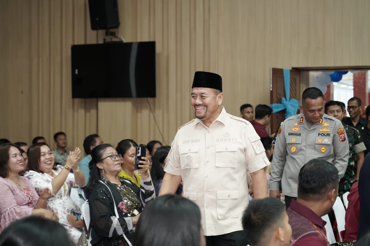 *BATU BARA MBS* – Bupati Batu Bara H. Baharuddin Siagian, S.H., M.Si., bersama Wakil Bupati Syafrizal, S.E., M.AP., menghadiri Perayaan Natal Aparatur Sipil Negara (ASN) yang diselenggarakan oleh Forum Komunitas Kristen Pemerintah Kabupaten Batu Bara, di Aula A Kantor Bupati Batu Bara, Kecamatan Lima Puluh, Selasa malam (13/1/2026).