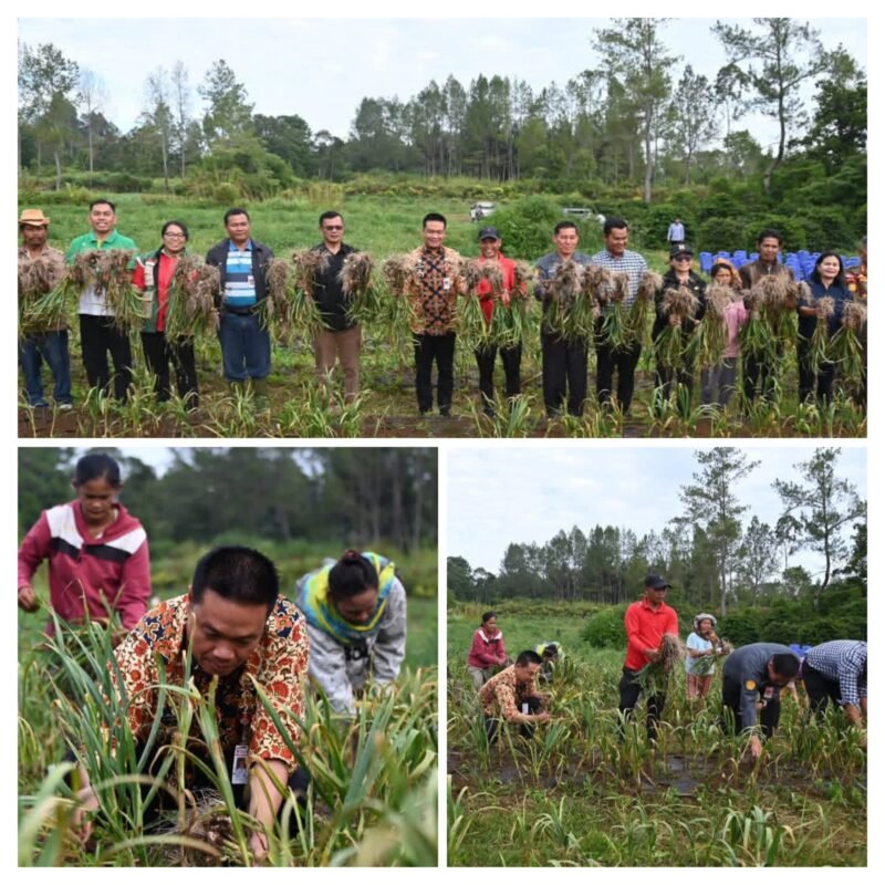 Bupati Humbahas Dr Oloan P Nababan SH MH bersama Kelompok Tani “Muda Djaya” di Sipalpal Desa Nagasaribu I Kecamatan Lintongnihuta panen bawang putih, Jumat 20 Februari 2026. Hasil panennya tergolong bagus dan cukup memuaskan.
