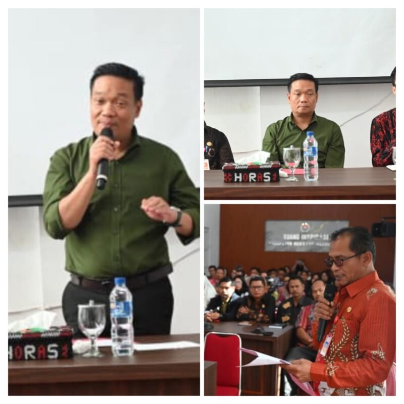 Bupati Oloan Nababan hadir didampingi Staf Ahli Bupati Jaulim Manullang, dengan peserta kegiatan terdiri dari pimpinan organisasi perangkat daerah (OPD), pejabat struktural, serta aparatur sipil negara (ASN) yang berperan langsung dalam penyusunan perencanaan, pelaksanaan program, dan evaluasi kinerja pemerintahan daerah.
