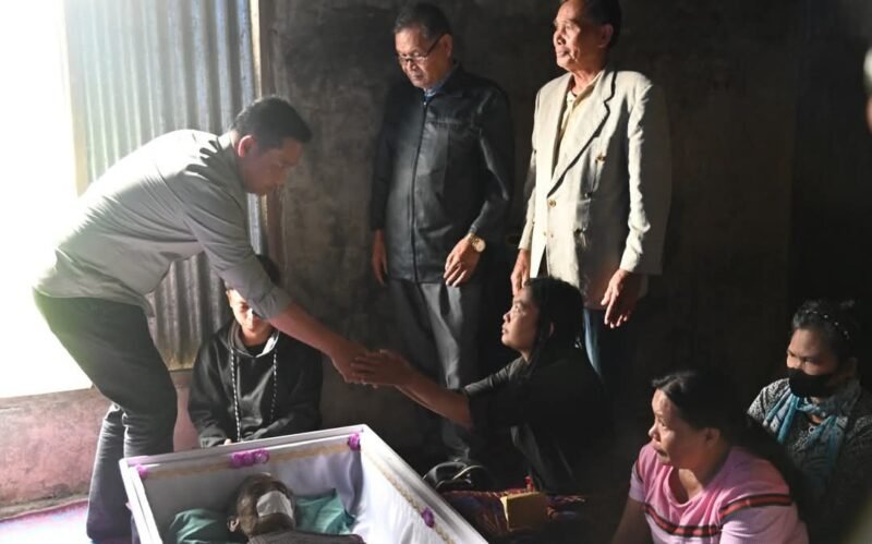 Bupati Humbang Hasundutan, Dr. Oloan Paniaran Nababan, SH, MH, melayat ke rumah duka almarhum Levinder Simanullang di Desa Panggugunan, Kecamatan Pakkat, Sabtu (13/12/2025).