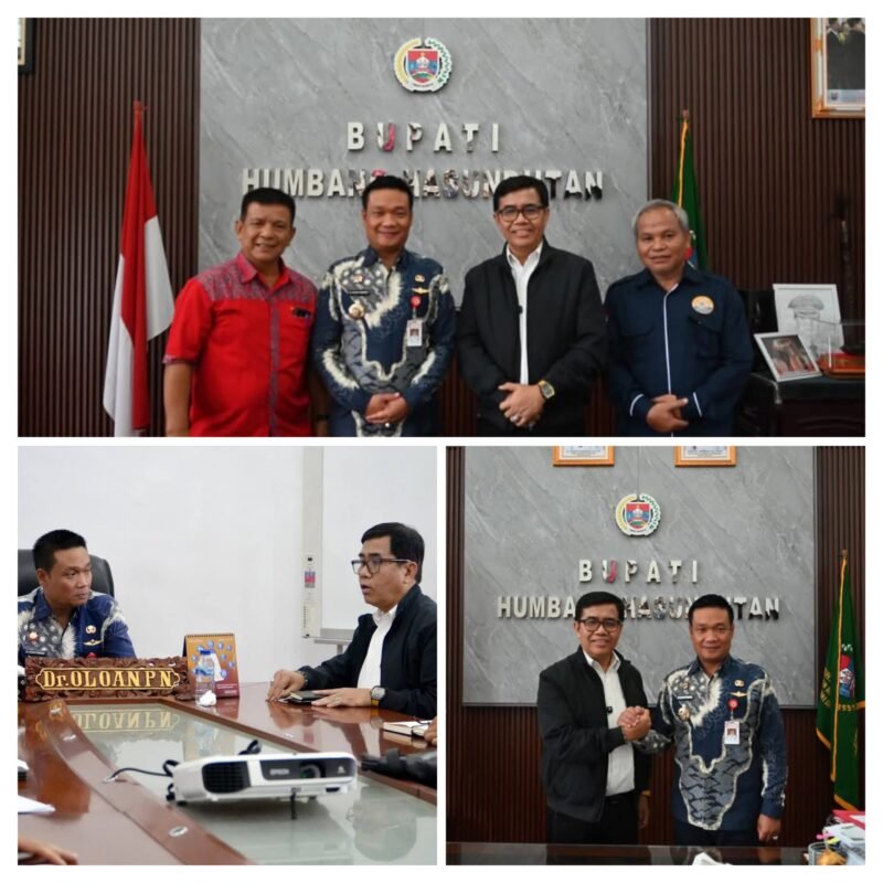 Bupati Humbang Hasundutan, Dr. Oloan Paniaran Nababan, SH, MH menerima Kunjungan Wakil Ketua Yayasan Santo Thomas Drs.Lasro Simbolon, MA bersama Wakil Rektor III Bidang Kemahasiswaan, Beasiswa dan Alumni Ir. Charles Sitindaon, MT, Dekan Fakultas Pertanian Prof. Dr. Posman Sibuea, MS di ruang kerja Bupati, Perkantoran Bukit Inspirasi Doloksanggul, Kamis 26 Februari 2026.