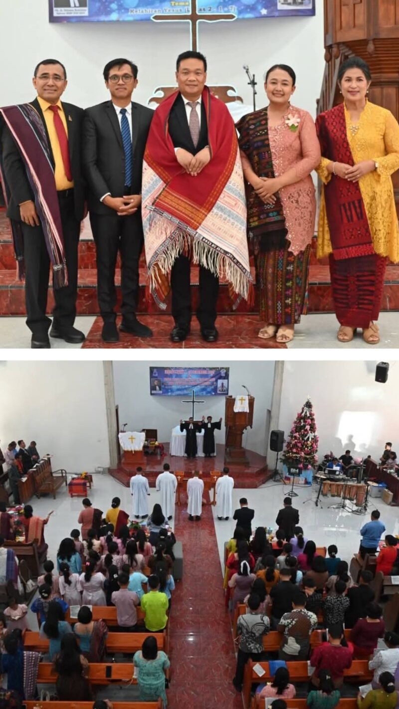 Kehadiran Bupati disambut hangat oleh jemaat dan para pelayan gereja yang mengikuti ibadah dengan penuh sukacita dan khidmat.