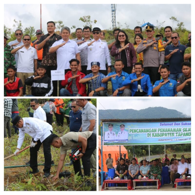 Bupati Tapanuli Utara Dr. Jonius Taripar Parsaoran Hutabarat, S. Si., M. Si didampingi Wakil Bupati Dr. Deni Parlindungan Lumbantoruan, M.eng, Kapolres Tapanuli Utara AKBP Ernis Sitinjak, S.H., S.I.K, sejumlah pimpinan perangkat daerah beserta masyarakat terdampak bencana alam secara resmi mencanangkan Gerakan Penanaman Sejuta Pohon Durian sebagai bagian dari upaya penghijauan dan pemulihan lingkungan pascabencana hidrometeorologi. Kegiatan tersebut dipusatkan di lokasi Hunian Tetap Desa Dolok Nauli, Kecamatan Adiankoting, Jumat (13/2/2026).