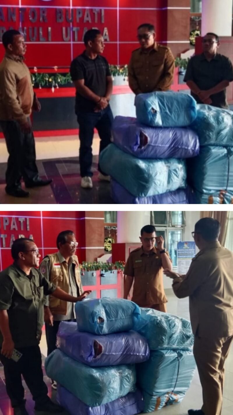 Tarutung – Bupati Tapanuli Utara, Dr Jonius Taripar Parsaoran Hutabarat, menerima bantuan berupa seragam sekolah anak-anak dan baju Natal dari Jumintar Dalimunte br Tambunan , yang berdomisili di Cianjur, Provinsi Jawa Barat. Kegiatan penerimaan bantuan tersebut berlangsung di Kantor Bupati Tapanuli Utara, Selasa (23/12/2025).