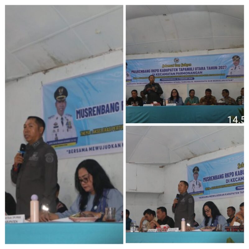 ‎Bupati Tapanuli Utara, Jonius Taripar Parsaoran Hutabarat, S.Si., M.Si menegaskan arah pembangunan Kabupaten Tapanuli Utara ke depan akan difokuskan pada tiga aspek utama, yakni penguatan sumber daya manusia (SDM), pengembangan sektor pertanian, serta pembangunan berbasis budaya dan pariwisata yang disampaikan pada saat Musyawarah Perencanaan Pembangunan (Musrenbang) Kecamatan Parmonangan yang dilaksanakan di HKBP Parmonangan, Kamis (26/2/2026).
