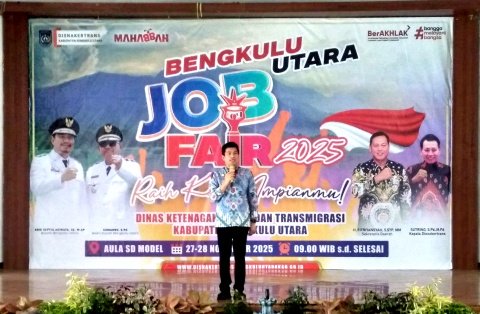 Dalam sambutannya Bupati Bengkulu Utara menyampaikan rasa syukur karena kegiatan tersebut dapat terlaksana dengan lancar serta dihadiri oleh berbagai perusahaan dan pencari kerja dari berbagai kalangan.