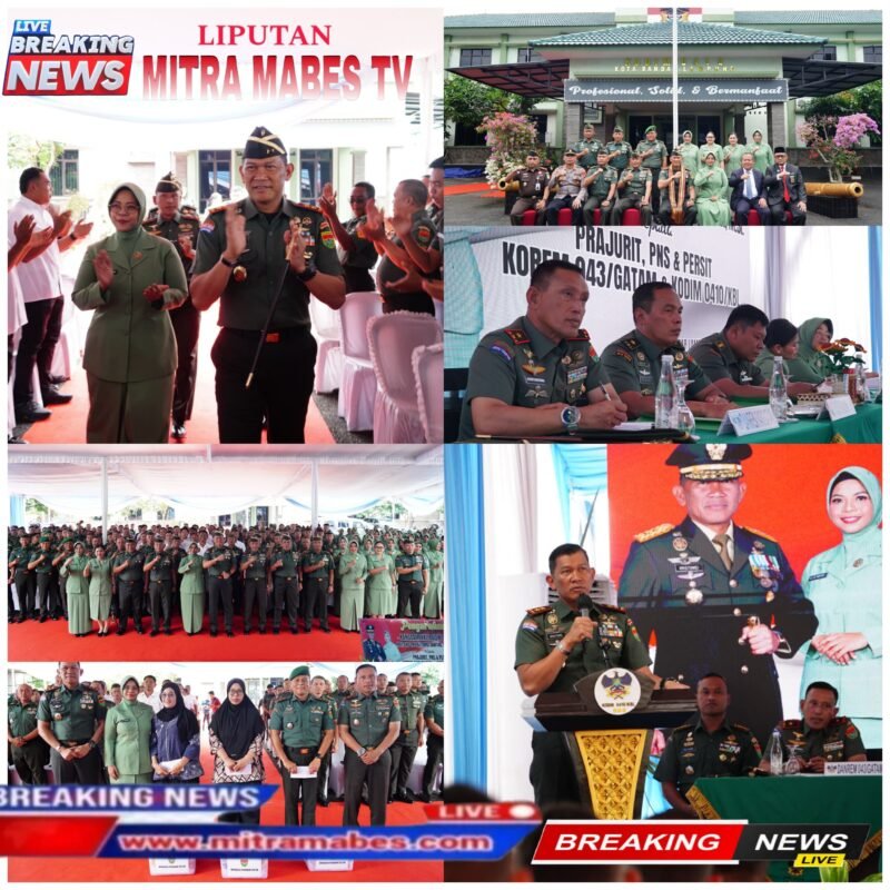 Sementara itu, Danrem 043/Garuda Hitam Brigjen TNI Haryantana, S.H., dalam sambutannya menyampaikan rasa syukur atas kunjungan Pangdam XXI/Radin Inten yang menjadi momentum pembinaan moral dan motivasi bagi seluruh jajaran.