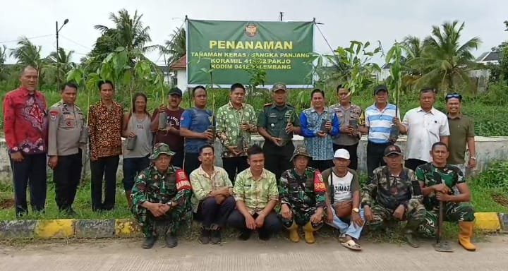 Dipimpin langsung Danramil 02/Pakjo, Kapten Inf D. Silitonga, puluhan pohon keras jangka panjang ditanam sebagai bentuk kepedulian nyata terhadap kelestarian lingkungan. Mahoni dan tabebuya dipilih bukan tanpa alasan—selain memperindah kawasan, tanaman ini diharapkan mampu menjaga keseimbangan alam serta mengurangi potensi genangan air di sekitar pemukiman.