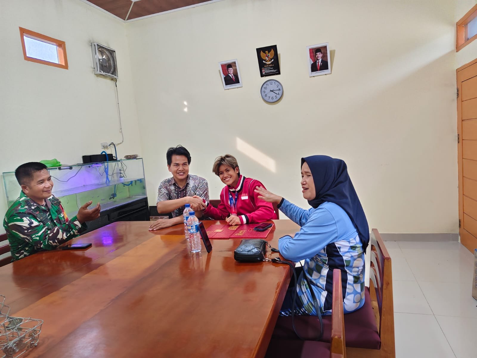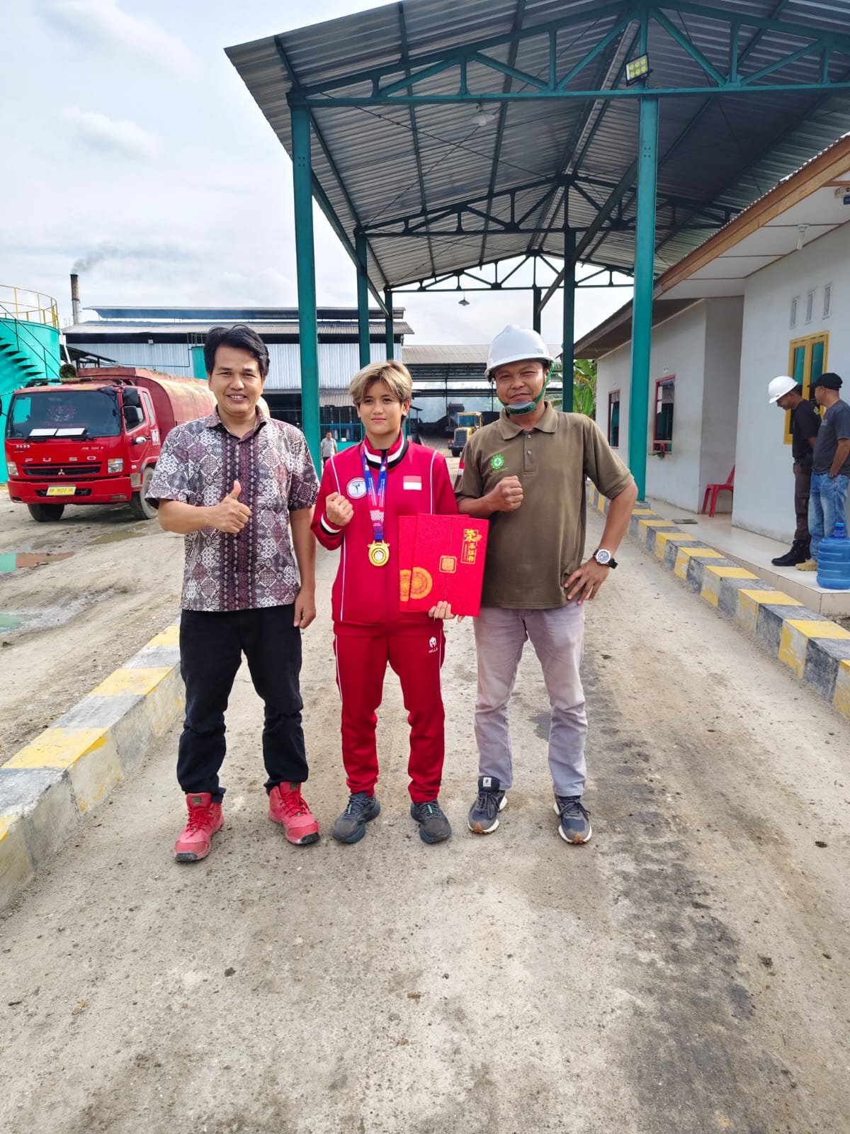 “Atlet muda dari desa Mahato ini membuktikan bahwa dengan disiplin, pembinaan serius, dan dukungan semua pihak, putra putri daerah mampu bersaing dan berjaya di level internasional,” ujarnya. Sang atlit juara Asia ,,Devi Nur Fadilah di dampingi ayah tercinta peltu Amir bersama staf perusahaan PT APS km 22 berpoto bersama***