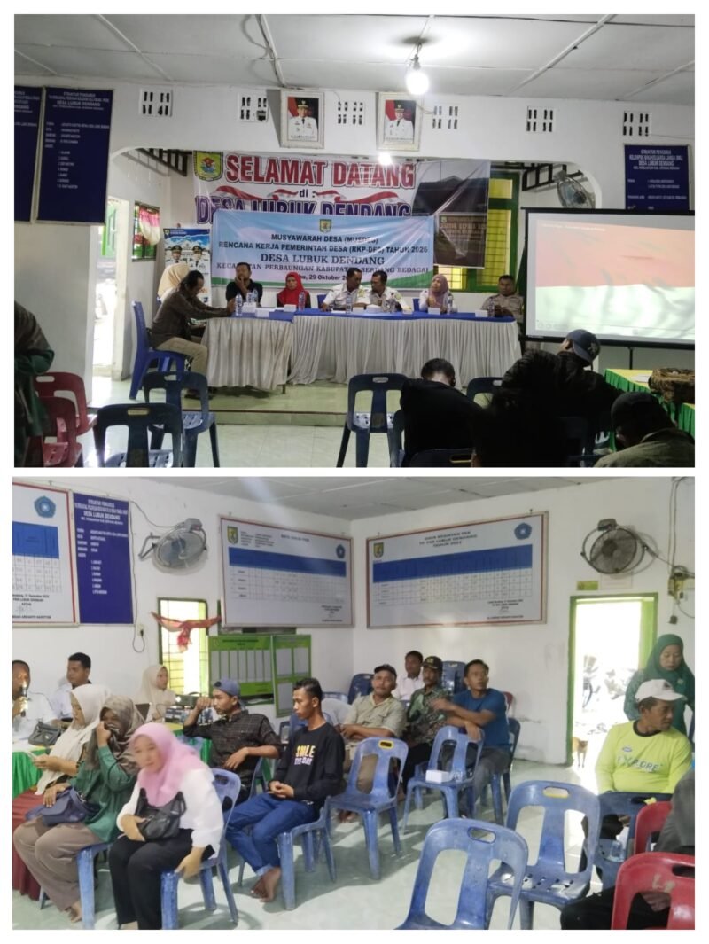 Desa Lubuk Dendang Kecamatan Perbaungan, Kabupaten Serdang Bedagai Sumatera Utara – Musyawarah RKP Desa tahun 2026 digelar pada Rabu, 29 Oktober 2025, di Balai Desa Lubuk Dendang Musyawarah ini dihadiri oleh Kepala Desa Lubuk Dendang, perangkat desa, BPD, dan masyarakat desa.