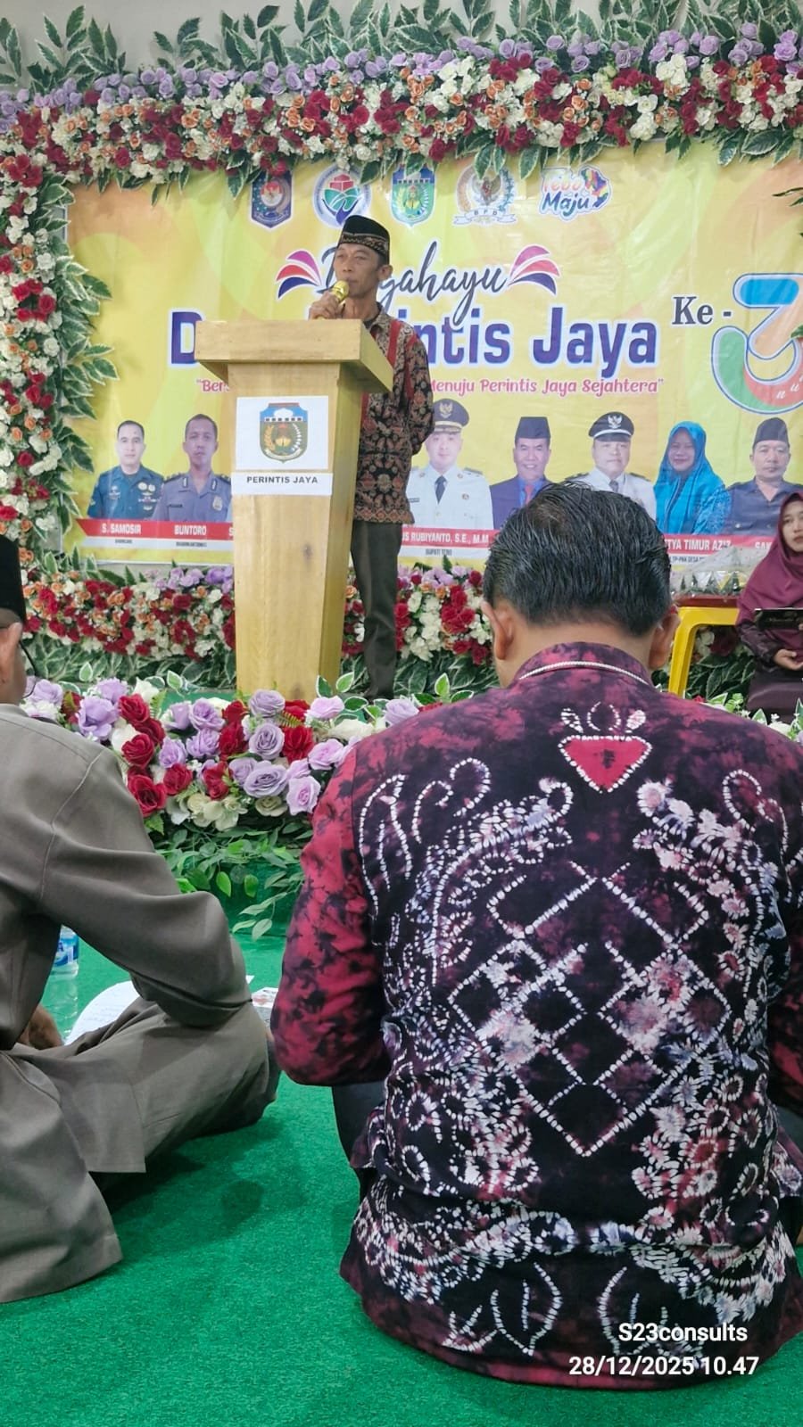 Acara berlangsung sederhana namun tetap sarat makna sebagai bentuk rasa syukur atas perkembangan desa selama tiga tahun terakhir. Pada momen tersebut, Pj. Kades Perintis Jaya juga meresmikan Gedung Serbaguna Desa Perintis Jaya yang diharapkan dapat menjadi wadah kegiatan masyarakat.