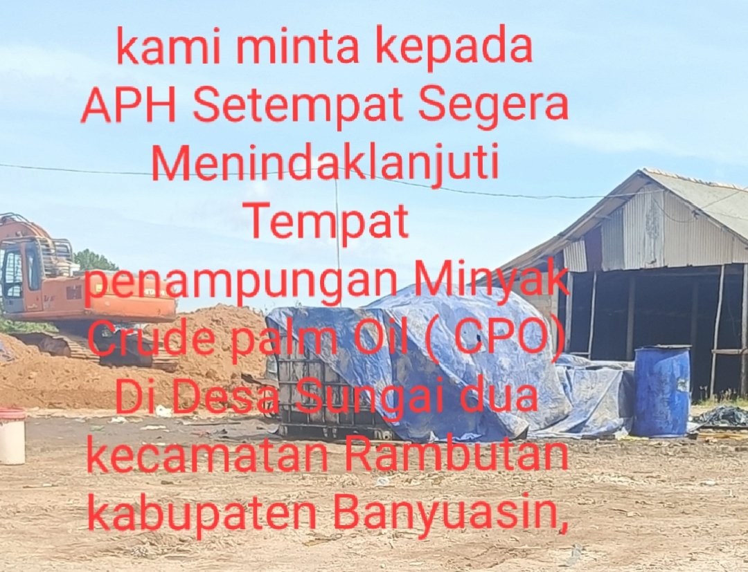 Penampungan minyak mentah ilegal kelapa sawit Crude palm Oil { CPO} Di Desa Sungai dua kecamatan Rambutan kabupaten Banyuasin ?Sudah hampir 2 tahun ini tidak tersentuh Hukum?