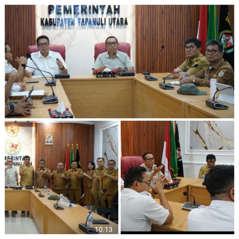 Bupati Tapanuli Utara Dr. Jonius Taripar Parsaoran Hutabarat, S.Si., M.Si., didampingi Sekretaris Daerah Henry M. M. Sitompul, M.Si., bersama pimpinan perangkat daerah teknis, menyampaikan usulan penanganan jaringan irigasi dan sungai kepada Kementerian Pekerjaan Umum (PU) melalui Balai Besar Wilayah Sungai (BBWS) Sumatera II Medan. Pertemuan tersebut berlangsung di Aula Martua Kantor Bupati Tapanuli Utara, Selasa (6/1/2026).