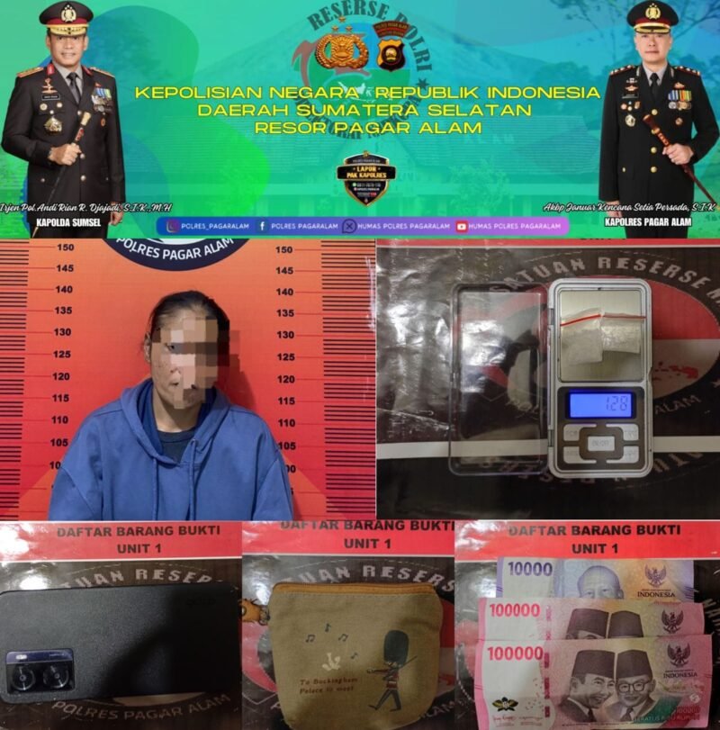 Berawal dari laporan masyarakat, Satresnarkoba Polres Pagar Alam menggerebek sebuah rumah di Sandar Angin, Dempo Utara, dan mengamankan seorang perempuan yang diduga pengedar sabu beserta barang bukti.