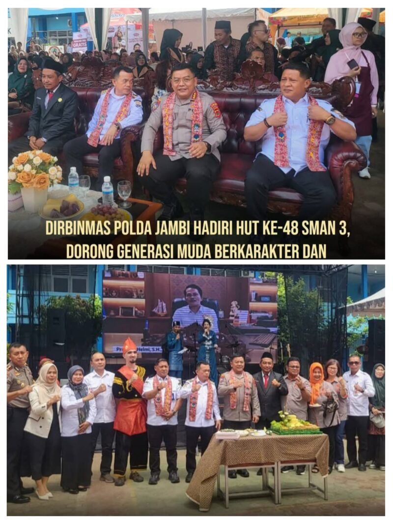 JAMBI // MBS – Direktorat Pembinaan Masyarakat (Ditbinmas) Polda Jambi menghadiri peringatan Hari Ulang Tahun (HUT) ke-48 SMAN 3 Kota Jambi yang digelar pada Rabu (4/2/2026). Kegiatan berlangsung meriah di Lapangan SMAN 3 Kota Jambi dan diikuti oleh berbagai unsur pemerintah, TNI-Polri, dunia pendidikan, serta pelajar.