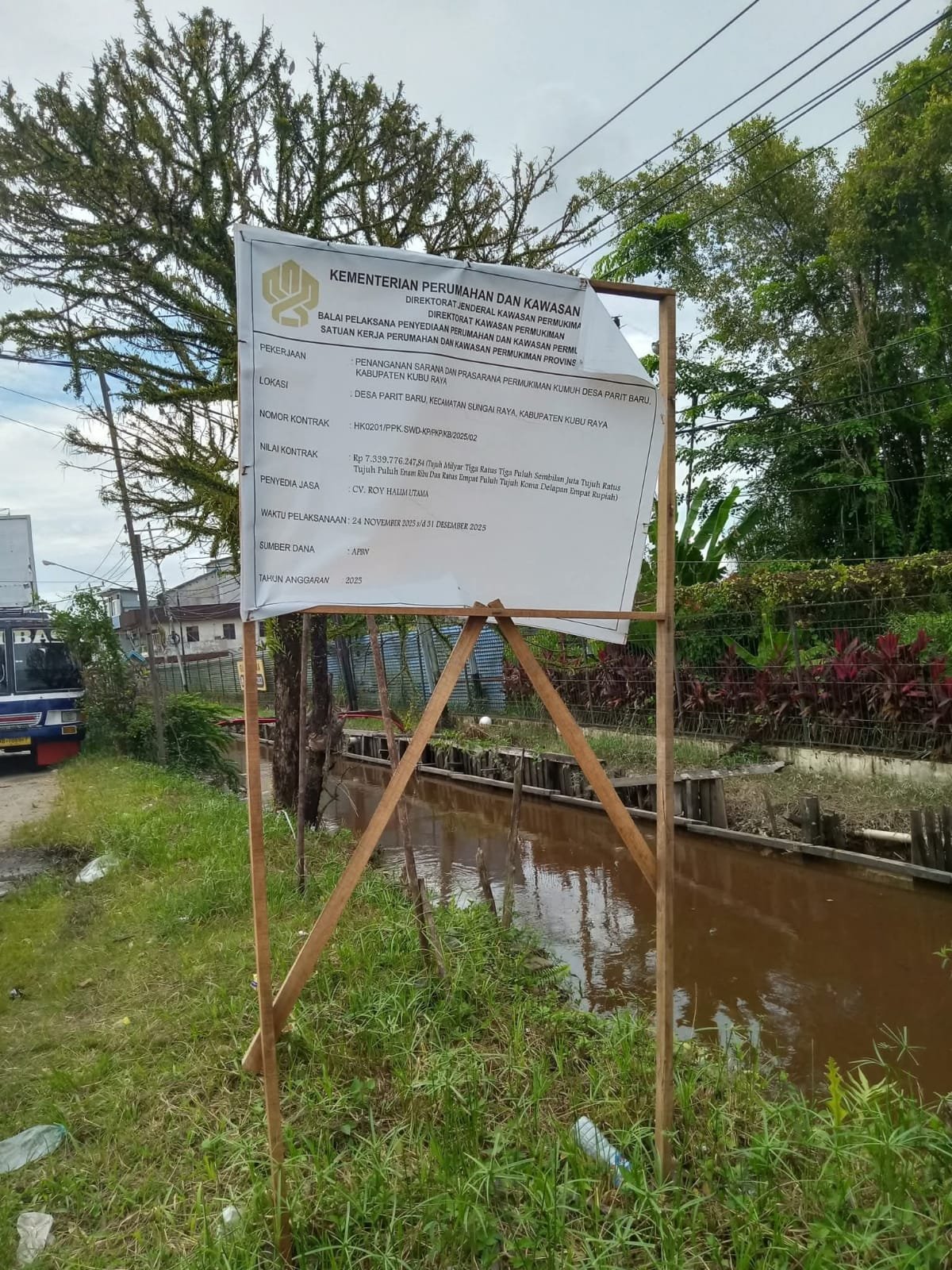 Pekerjaan Penanganan Sarana dan Prasarana Permukiman Kumuh di Desa Parit Baru, Kecamatan Sungai Raya, Kabupaten Kubu Raya, yang bernilai lebih dari Rp 7 miliar bersumber dari APBN 2025, kembali menuai sorotan.