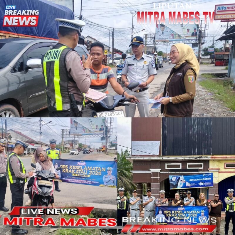 Lampung Tengah Mitra Mabes.Com – Hari Kedua pelaksanaan Operasi Keselamatan Krakatau 2026, Satlantas Polres Lampung Tengah bersama Bappeda dan Jasa Raharja hari ini menggelar kegiatan sosialisasi serta edukasi tertib berlalu lintas secara humanis kepada masyarakat pengguna jalan.