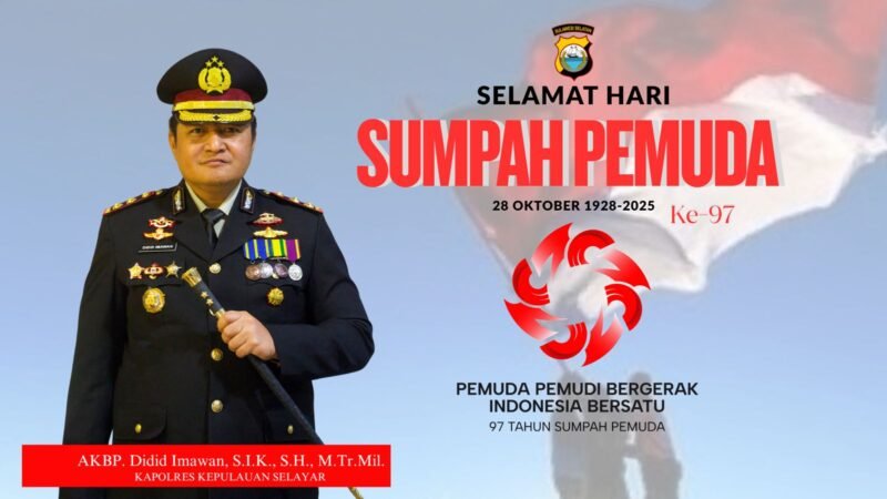 Dengan mengusung tema nasional “Pemuda Pemudi Bergerak, Indonesia Bersatu”, Kapolres Kepulauan Selayar AKBP Didid Imawan, S.I.K., S.H., M.Tr.Mil., menyampaikan pesan khusus kepada para pemuda dan pemudi di wilayahnya agar terus menjaga semangat persatuan dan berperan aktif dalam membangun daerah.