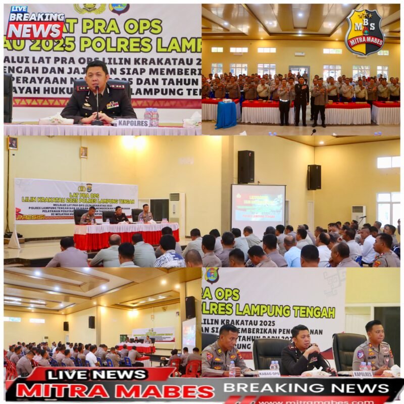 Lampung Tengah Mitra Mabes.Com – Polres Lampung Tengah, Polda Lampung menggelar Latihan Pra Operasi (Lat Pra Ops) Lilin Krakatau 2025 sebagai bagian dari persiapan pengamanan perayaan Natal 2025 dan Tahun Baru 2026 (Nataru), Jumat (19/12).