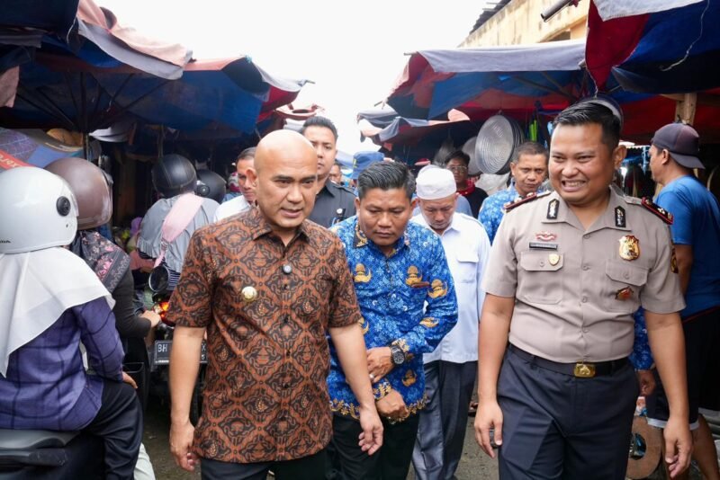 MUARA BUNGO // MBS – Menjelang Bulan Suci Ramadhan dan Hari Raya Idul Fitri 1447 H, Wakapolres Bungo Kompol M. Riedho S Taufan, CPHR., S.IK., MH mendampingi Bupati Bungo, H. Dedy Putra, bersama Tim Pengendali Inflasi Daerah (TPID) dan unsur Forkopimda melakukan pengecekan langsung terhadap harga dan ketersediaan bahan pokok di sejumlah titik distribusi dan pasar tradisional, Rabu (18/2/2026) pagi.