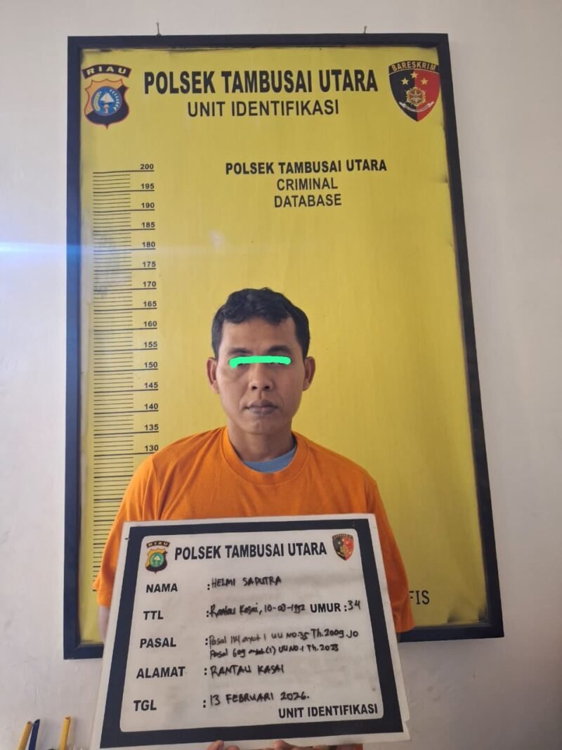 Tambusai Utara . Mbs Kapolsek Tambusai Utara AKP .Heri Yuliardi ,STr.K. S.IK. MH bersama Unit Reskrim Polsek Tambusai Utara polres Rokan hulu , Berhasil mengungkap kasus dugaan tindak pidana narkotika jenis sabu seberat BB 5,10 gram , adalah Bandar Narkoba yang sudah lama malang melintang di desa Tambusai Utara Rokan hulu , pada Jumat ( 13/2/2026 ) pukul.13.30 wib , desa Tambusai Utara Rokan hulu Riau .