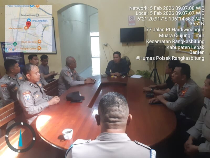 Bersama Personil Polsek Rangkasbitung sekaligus menyampaiakan hasil rapat bersama pimpinan ke personil Polsek Rangkasbitung.Kamis (05/02/2026).