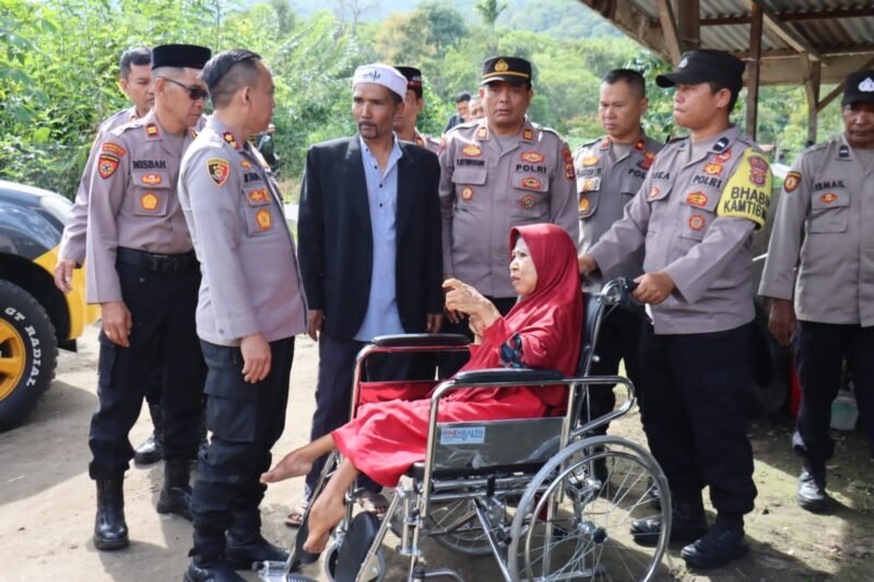 Dengan penuh empati, Kapolres mengawali kunjungan door to door ke rumah warga yang sedang sakit menahun. Salah satunya adalah Sdri. Saliam (45), penyandang disabilitas sejak lahir yang kini harus menjalani hidup di atas kursi roda. Ia tinggal bersama abang kandungnya setelah kedua orang tuanya meninggal dunia.