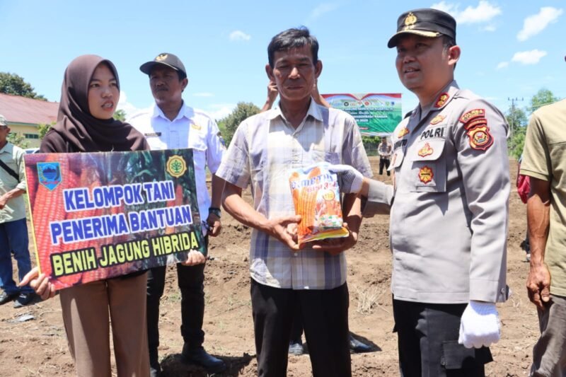 Kapolres Lahat dalam giat tersebut memberikan bantuan Benih Jagung Hiprida ( bijit unggul ) dan Pupuk, serta alat pertanian kepada kelompok tani, guna mendukung program Ketahanan Pangan Nasional. (HR)