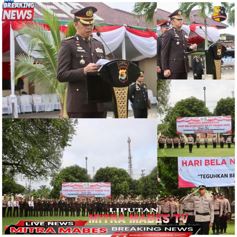 Lampung Tengah Mitra Mabes.Com – Jajaran Polres Lampung Tengah, Polda Lampung melaksanakan Upacara Peringatan Hari Bela Negara ke-77 Tahun 2025 di halaman apel Mapolres setempat, Jumat (19/12/25) pagi.