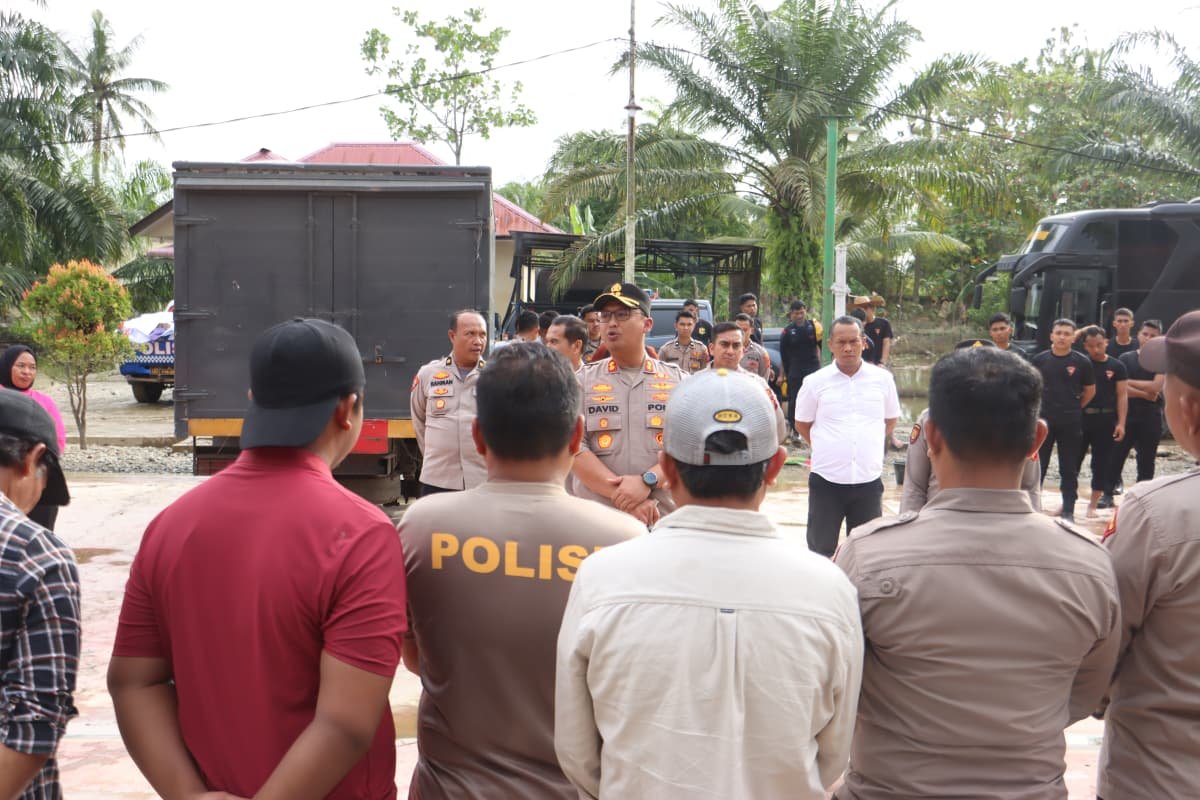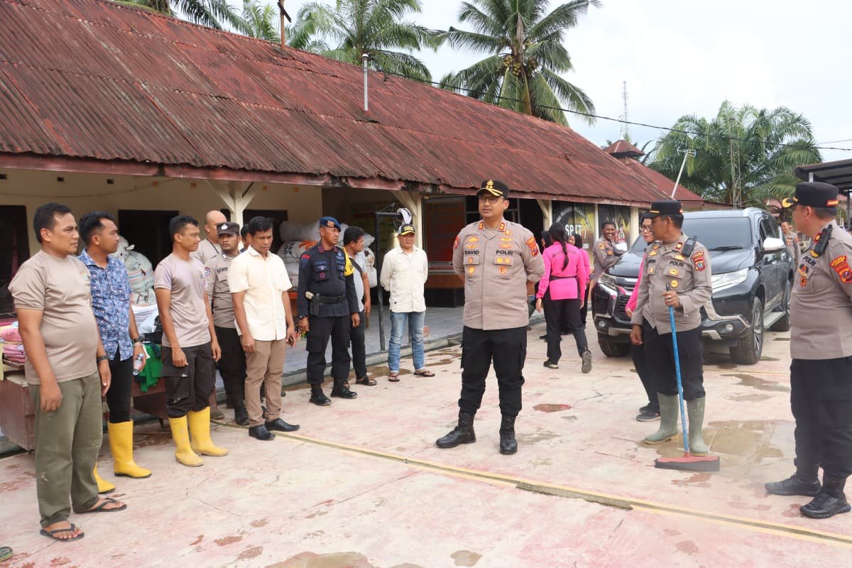 Kapolres Langkat AKBP David Triyo Prasojo, S.H., S.I.K., M.Si. memberikan motivasi serta bantuan kepada Polsek Tanjung Pura yang terdampak bencana banjir. Kegiatan tersebut dilaksanakan pada Senin, 15 Desember 2025, sekira pukul 16.00 WIB, bertempat di Mako Polsek Tanjung Pura.