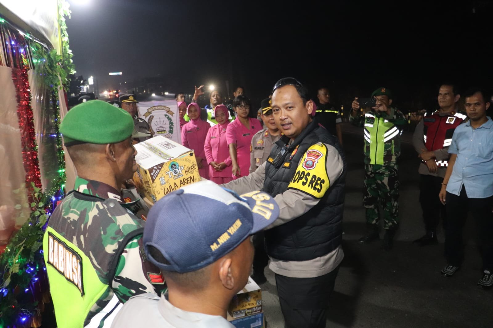 Dalam rangka memastikan pelaksanaan pengamanan Natal dan Tahun Baru berjalan optimal, Kapolres Langkat AKBP David Triyo Prasojo, S.H., S.I.K., M.Si., bersama Wakapolres Langkat, para Pejabat Utama (PJU) Polres Langkat, perwira dan personel Polres Langkat, serta Pengurus Bhayangkari Cabang Langkat yang diwakili Wakil Ketua Cabang Bhayangkari Ny. Petsah Husni beserta anggota, melaksanakan pengecekan Pos Pengamanan (Pos Pam) dan Pos Pelayanan (Pos Yan) Operasi Lilin Toba di wilayah hukum Polres Langkat, Selasa malam (23/12/2025).
