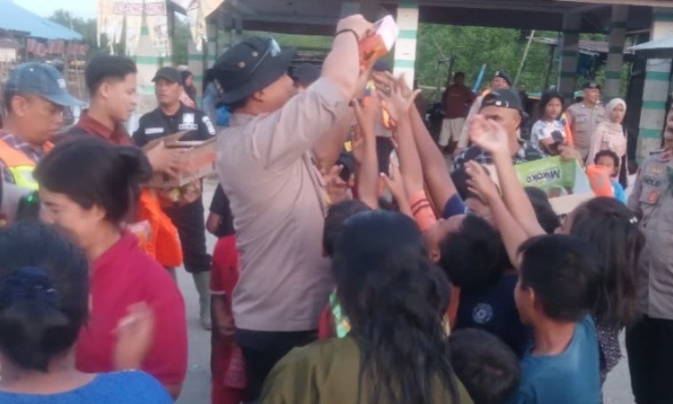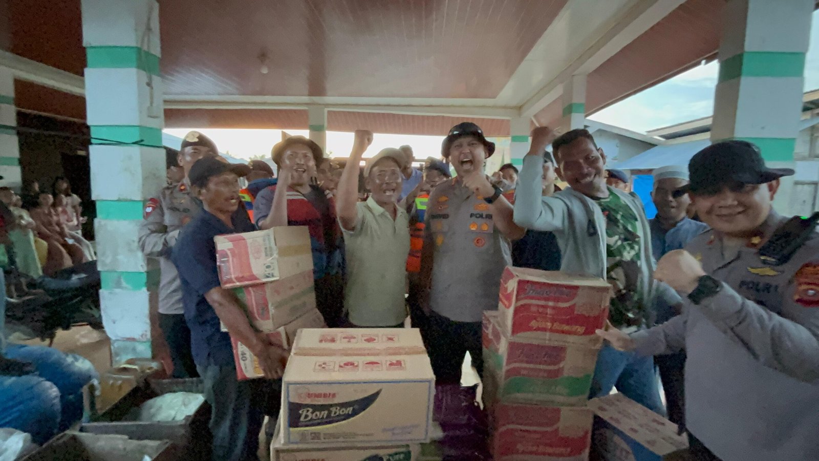 Adapun bantuan logistik yang dibagikan terdiri dari, Indomie: 150 kotak, Telur ayam: 50 papan, Beras 5 Kg: 150 karung, Air mineral gelas: 90 kotak, Makanan ringan/snack: 50 kotak, Pop Mie: 20 kotak, Pakaian bekas layak pakai: 30 karung.