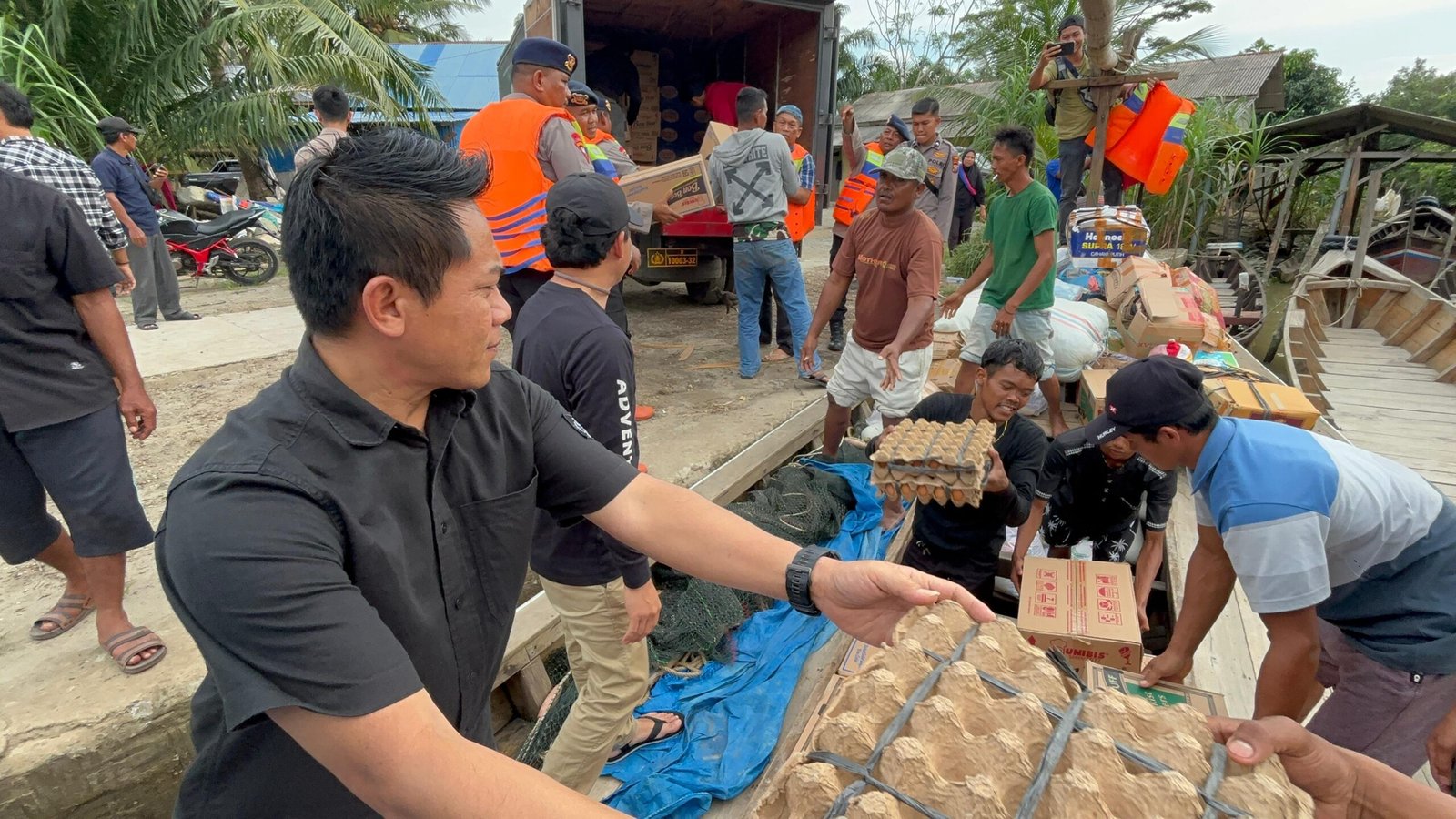 Bantuan didistribusikan melalui jalur darat dan laut. Rombongan berangkat dari Mapolres Langkat menuju Pelabuhan Batang Buluh, Kecamatan Secanggang, kemudian melanjutkan perjalanan menggunakan tiga kapal laut ke Pelabuhan Desa Tapak Kuda. Setelah tiba, logistik diangkut menggunakan dump truck dan mobil pickup L300 menuju lokasi terdampak banjir.