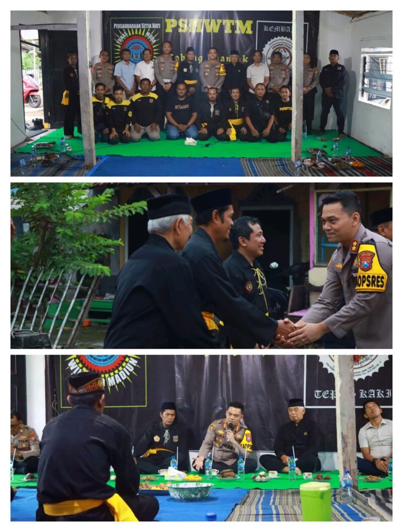 Mitra.mabes.com – Nganjuk – Kapolres Nganjuk AKBP Suria Miftah Irawan, S.H., S.I.K., M.I.K., didampingi Pejabat Utama (PJU) Polres Nganjuk melaksanakan silaturahmi dan audiensi dengan Ketua PSHW Tunas Muda Cabang Nganjuk di Padepokan PSHW, Jl. Gatot Subroto Kauman, Nganjuk, Rabu (12/2/2026). Kegiatan ini bertujuan mempererat sinergi serta menjaga kerukunan antarperguruan silat di wilayah Kabupaten Nganjuk.